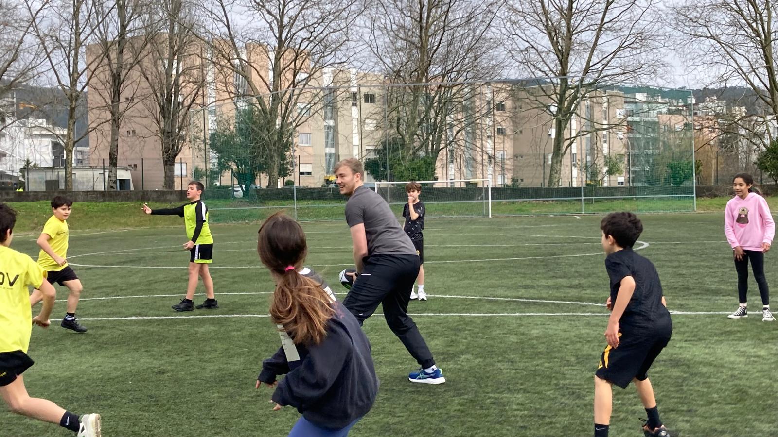 Integrada no Projeto DAC “Criar Pontes” e no projeto PEBI, a turma do 5.º C teve uma aula de rugby. O rugby surgiu no Reino Unido e, com esta iniciativa, pretendeu-se criar uma ponte entre esta modalidade desportiva e o país/língua que a consagrou, proporcionando aos alunos uma experiência nova, enriquecedora.