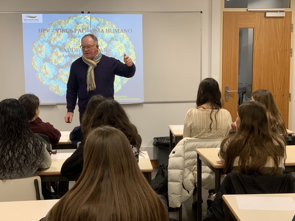 Informar e sensibilizar os estudantes para os riscos associados à infeção pelo Vírus do Papiloma Humano (HPV), as formas de transmissão do vírus e as formas de prevenção foram alguns dos objetivos das sessões de sensibilização sobre o HPV – vírus do Papiloma Humano que decorreram durante o mês de fevereiro e foram desenvolvidas pelo Sr. enfermeiro Humberto Domingues da UCC de Viana do Castelo, dirigidas aos alunos do 8º ano.
