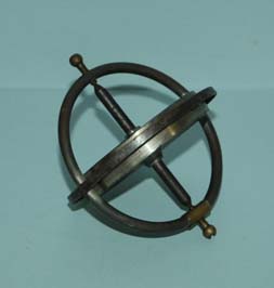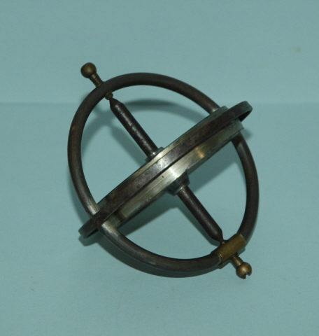 Giroscópio utilizado no Laboratório de Física para fins pedagógicos. Inventado por Léon Foucault em 1852, o giroscópio é um instrumento metálico que consiste num rotor suspenso por um suporte formado por dois círculos articulados, e que funciona de acordo com o princípio da inércia. Trata-se, na sua essência, de um conjunto de várias rodas livres que podem girar em qualquer direcção mas que se opõem a qualquer tentativa de mudança da sua direcção original.