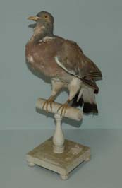 Exemplar taxidermizado para o estudo e observação nas aulas de Ciências Naturais. Este espécime encontra-se colocado sobre uma base de madeira, do centro da qual se eleva um cilindro vertical, terminando num poleiro. Classificação científica: Reino: Animalia; Filo: Chordata; Classe: Aves; Ordem: Columbiformes; Família: Columbidae; Género: Ocyphaps. A rola é uma ave de médio porte, com 25 a 36 cm. A plumagem é geralmente cinzenta, com tons acastanhados. São aves muito territoriais na época de acasalamento e alimentam-se de sementes e plantas herbáceas ao nível do solo.