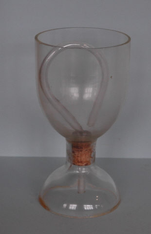 Vaso de vidro com um tubo interior recurvado e com saída no fundo do vaso. Este instrumento, utilizado no Labotratório de Física, permite produzir descargas intermitentes de água e explicar as fontes intermitentes naturais. Quando se faz correr água para dentro do vaso, este começa a encher-se, ficando a superfície da água ao mesmo nível, quer por dentro como por fora do ramo menor do sifão. Quando a água do vaso sobe até à parte superior da curvatura do tubo ou um pouco acima, ela passa de dentro do tubo para o ramo maior do mesmo e começa a escoar-se de forma igual à do escoamento feito por um sifão. Como a quantidade de água escoada é maior que a do fio de água que alimenta o vaso, o ramo menor do sifão fica de imediato todo fora de água e o escoamento cessa. Porém, se o fio de água continuar a correr para o vaso, o nível da água dentro do vaso eleva-se novamente até produzir um novo escoamento, processo que se vai repetindo sucessivamente.