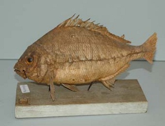 Dourada taxidermizada utilizada como elemento de estudo e observação nas aulas de Ciências Naturais.
