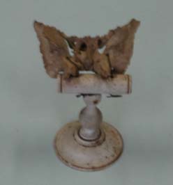 Vértebra de mamífero sobre base de madeira, utilizado no estudo e observação de espécies animais.